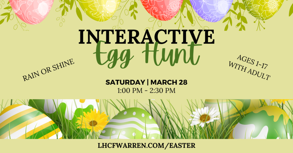 Families with children ages 1-17 are invited to journey through interactive Holy Week Story Stations and search for eggs along the way! Supplies are limited and an adult must be present.